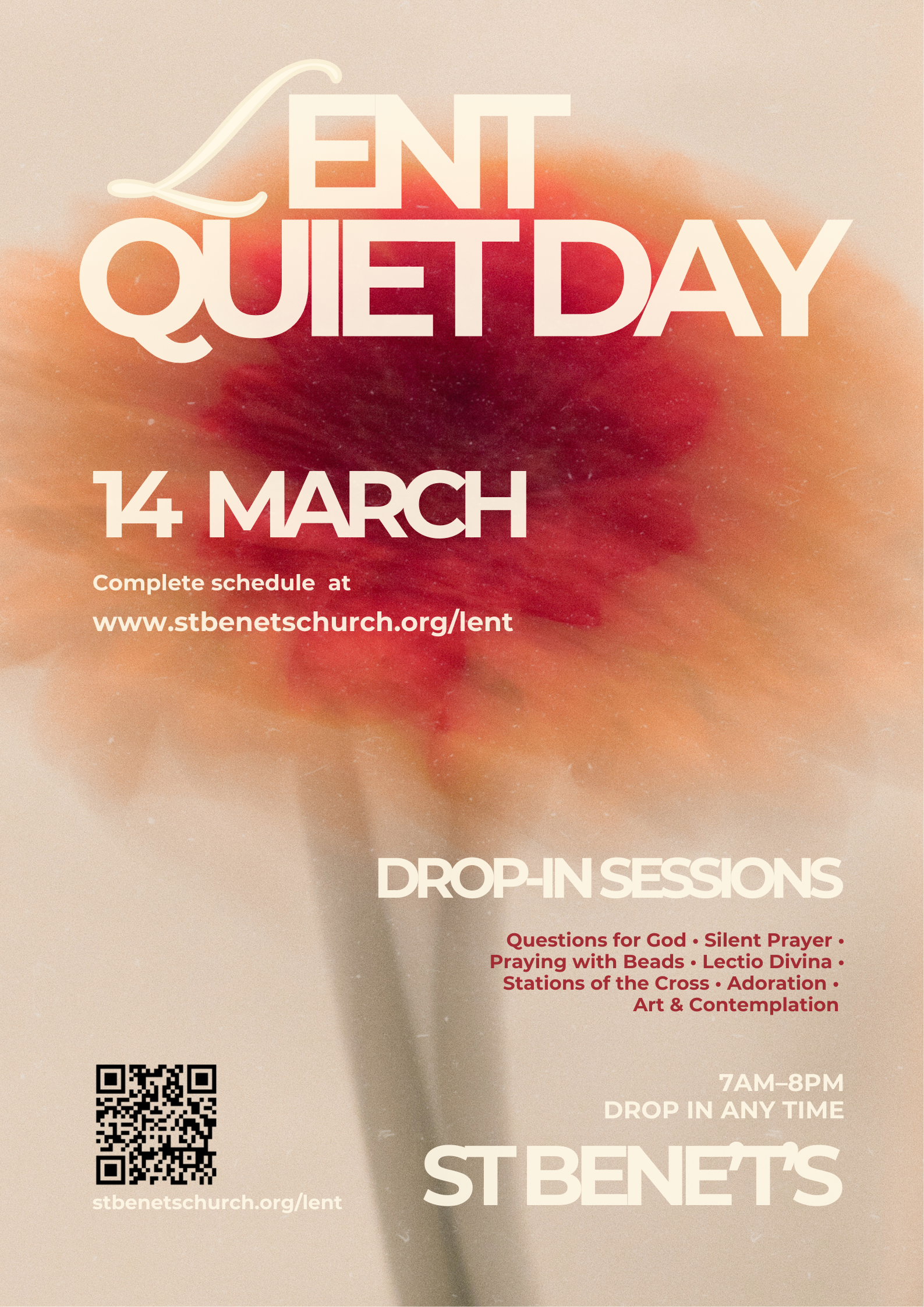 Join us for a Quiet Day on Saturday 14 March, 2026, in the oldest church in Cambridge. This is a ‘drop-in’ quiet day: Come when you can any time between 7am to 8pm, and stay as long as you need.